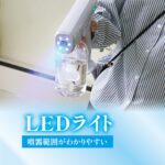 充電式のためコードレスで使いやすく、LEDブルーライト機能で噴霧範囲が見える。